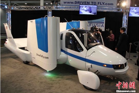 由美國Terrafugia公司研制成功的世界首款會飛的汽車4日在紐約車展上亮相,引發(fā)密切關(guān)注。該款能飛的汽車已完成了試驗飛行,并獲美國當(dāng)局生產(chǎn)許可,每輛售價28萬美元,已被預(yù)訂100多輛。