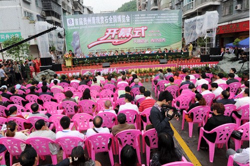 5月1日,首屆貴州青觀賞石全國(guó)博覽會(huì)在天柱縣隆重開幕。共展出貴州青4000余方,廣西柳州石、遼寧岫玉、新疆和田玉、云南黃龍玉、山東觀賞石等9省市,20多種奇石。