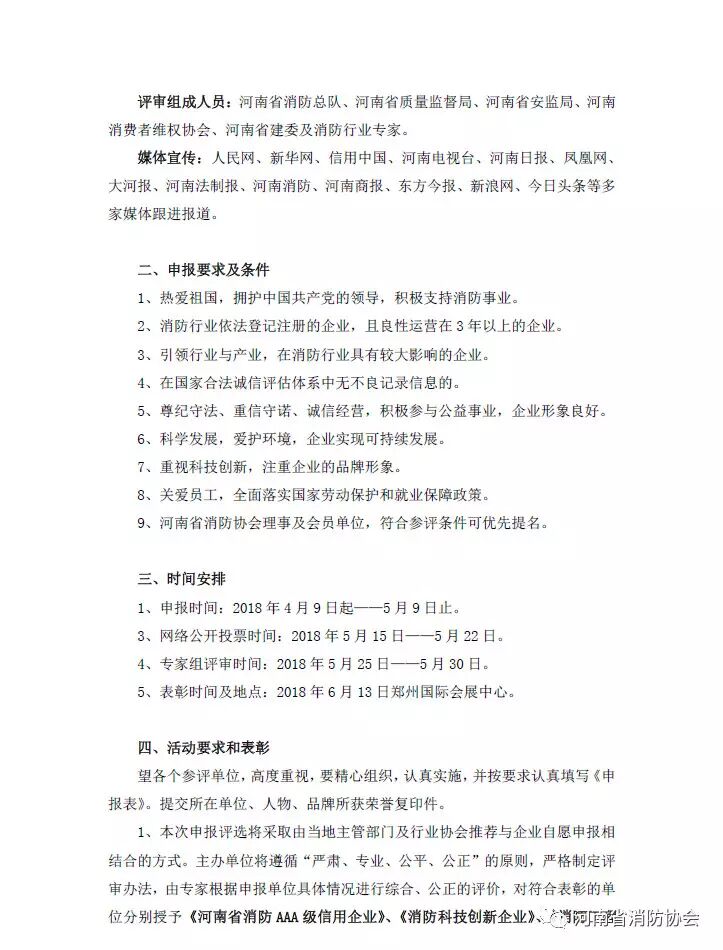 關(guān)于評(píng)選和申報(bào)2018年 《河南省消防AAA級(jí)信用企業(yè)》、《消防科技創(chuàng)新企業(yè)》、 《消防工程示范企業(yè)》的通知