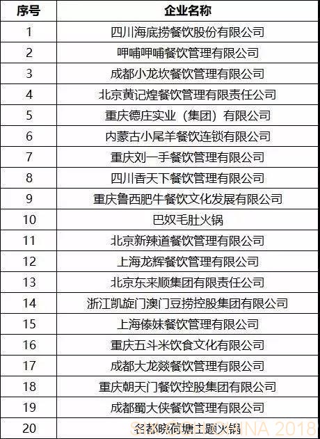 博覽會發(fā)布了2018中國餐飲集團百強排名。包括正餐集團50強、火鍋餐飲集團20強、快餐集團10強、團餐集團10強、西餐及休閑餐飲集團10強系列榜單。