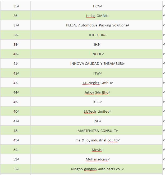 以下這些已經(jīng)登記報(bào)名參觀展會(huì)的采購商名單