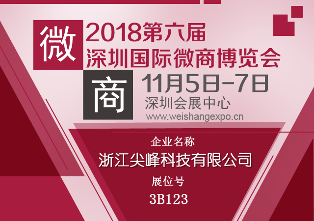 導(dǎo)讀:第六屆深圳國際微商博覽會將于2018年11月5-7日在深圳會展中心盛大開幕!浙江尖峰健康科技有限公司(JFHEALTH) 將攜旗下舒尼維等產(chǎn)品于3B123展位展出!