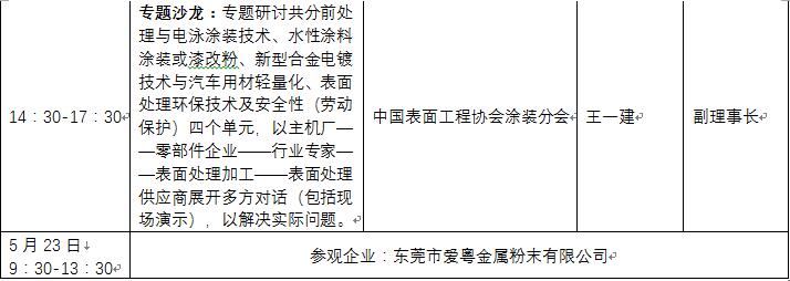 會議與展覽會深度相結(jié)合歷來是廣州國際表面處理展覽會的一大特色,本屆展會將有70場次國際性論壇、行業(yè)會議、技術(shù)研討會在同期舉辦,最新最前沿技術(shù)助力用戶企業(yè)最大限度地創(chuàng)造產(chǎn)品價值。部分會議及議程如下: