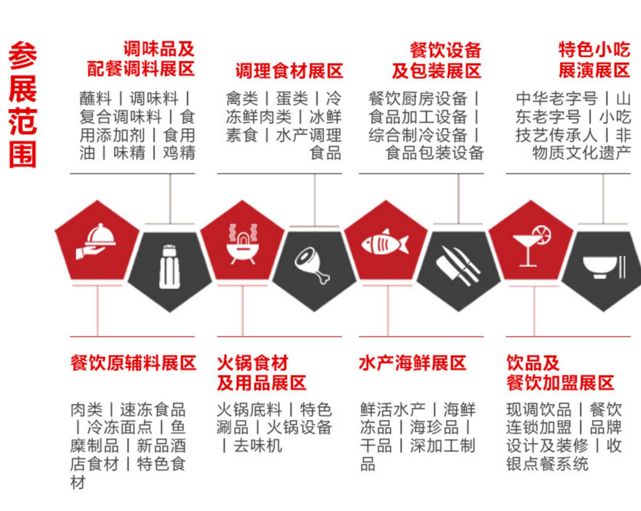 6)餐飲設(shè)備及包裝展區(qū):餐飲廚房設(shè)備、食品加工設(shè)備、綜合制冷設(shè)備、食品包裝設(shè)備;