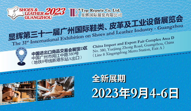 「顯輝第三十一屆廣州國際鞋類、皮革及工業(yè)設(shè)備展覽會(huì)」煥新啟航,將于2023年9月4-6日在廣交會(huì)展館D區(qū)(18.1 -20.1)舉辦,誠邀您在全新的展期再聚全新的展館,共襄顯輝廣州盛會(huì)!