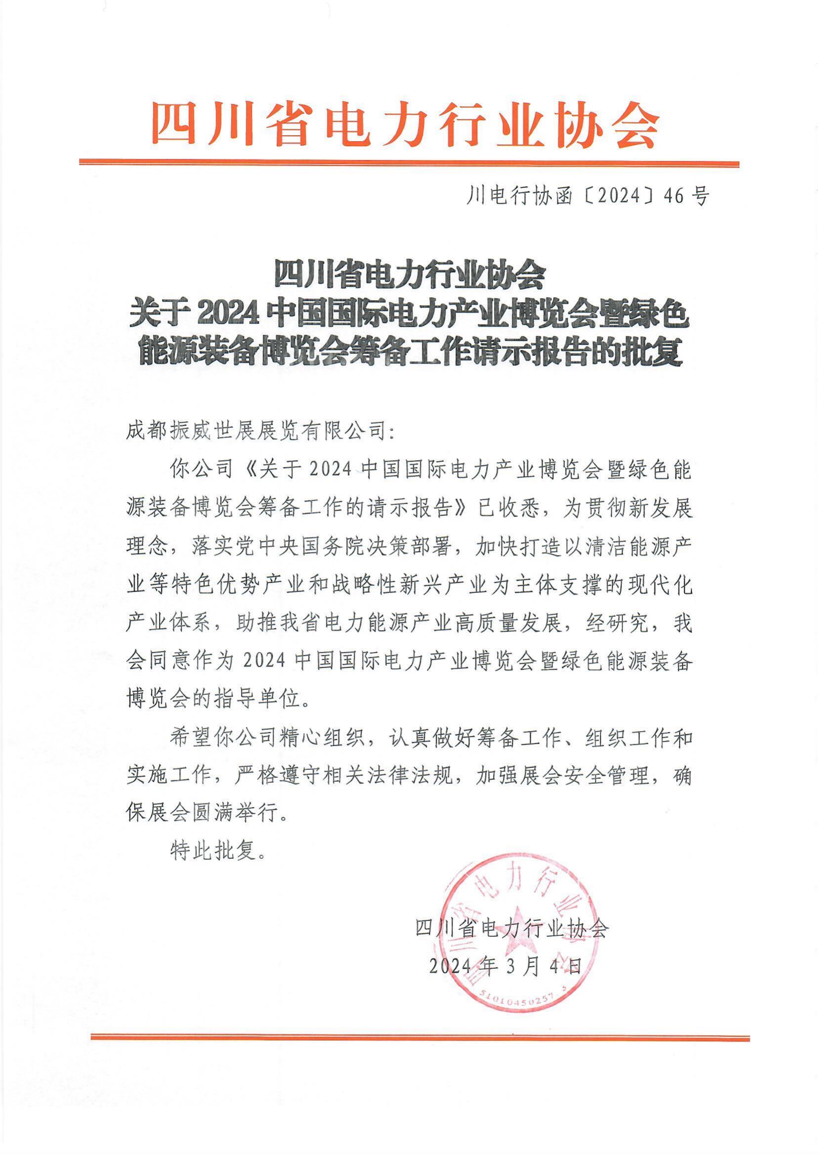 4月1日,中國國際貿(mào)易促進(jìn)委員會電力行業(yè)委員會正式復(fù)函,同意作為2024中國國際電力產(chǎn)業(yè)博覽會暨綠色能源裝備博覽會的聯(lián)合主辦單位,將積極組織會員及相關(guān)單位參展、參觀,與成都振威世展展覽有限公司共同打造世界領(lǐng)先的電力能源行業(yè)“風(fēng)向標(biāo)”交流合作平臺。