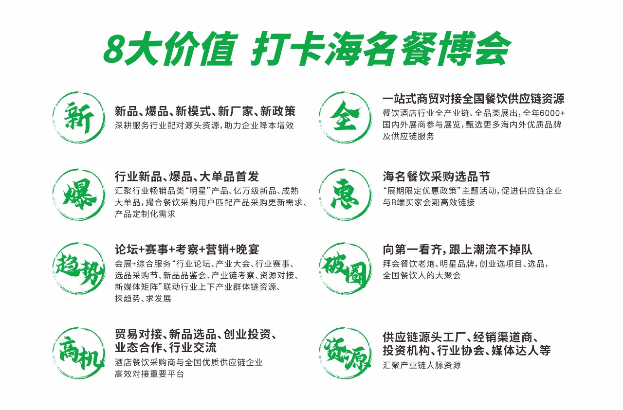 提利潤(rùn)、選新品、找廠家!在此我們衷心地希望您可以通過(guò)海名成都餐博會(huì)建立更多商務(wù)關(guān)系,達(dá)成更多實(shí)效合作,啟發(fā)適合自己的發(fā)展思路,海名·2024第12屆成都餐飲供應(yīng)鏈博覽會(huì)誠(chéng)邀您的蒞臨!
