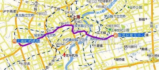 上海新國(guó)際博覽中心→上海浦東機(jī)場(chǎng)點(diǎn)擊看大圖乘車路線: